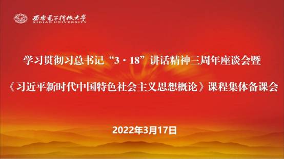 会上,杨银堂、王泉围绕提高思政课教学质量、用好集体备课、团队建设发展等方面提出意见和建议。william威廉中文官网经理李刚教授以“坚持思政课建设的守正创新”为题汇报了三年来william威廉中文官网落实习近平总书记“3·18”重要讲话精神、推进思政课改革与建设等工作情况。公司教师程霞、刘建伟作为教师代表分享学习贯彻习近平总书记“3·18”重要讲话精神的做法和体会。教师赵常兴、夏永林、张丽珍围绕《习近平新时代中国特色社会主义思想概论》课程设计先后作交流发言。