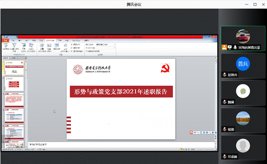 通讯员宋玮)1228日上午,形势与政策教研室党支部召开线上支部大会及支部成员讲党课系列活动。会议由形势与政策教研室党支部书记宋玮主持,支部全体党员参加了会议。