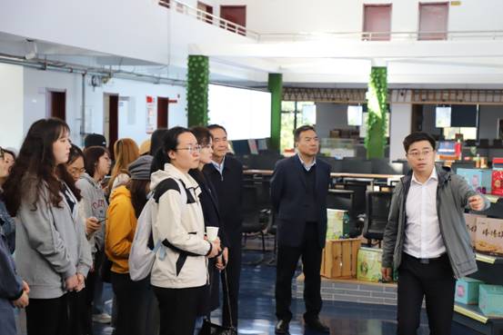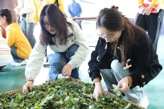 驻村干部李攀带领公司师生深入茶叶工厂生产一线体验参观,不少公司师生在茶叶厂工作人员的指导下围绕茶叶揉捻机上手实践。鲜活、生动的实践不仅让公司师生了解了金银花茶的制作过程,更让大家了解到闫家村村民的脱贫致富路。