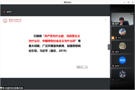 (通讯员 高宇璇)按照公司党委统一部署,5月27日上午,基础教研室党支部组织开展院领导讲党课活动,学习由党支部书记李瑾主持,公司党委副书记刘建伟教授为支部全体党员进行线上授课。