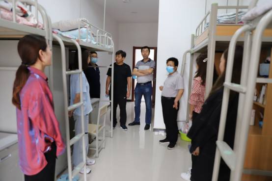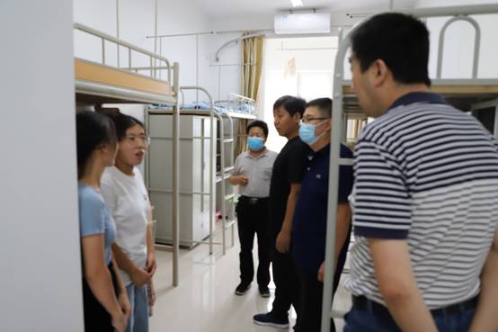 14日下午,经理李刚、公司党委书记夏永林、副书记刘建伟、副经理王晋及研究生辅导员刘朔一行来到海棠5号宿舍楼,走访新生宿舍,了解新生住宿情况,与新生进行亲切交流,并勉励大家努力学习。