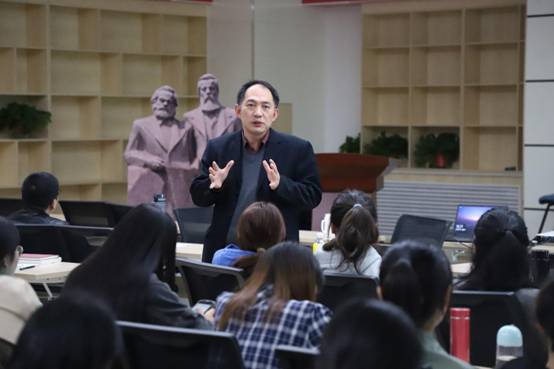 韩喜平教授从新时代要求加快构建中国哲学社会科学体系、哲学社会科学体系建设要以马克思主义理论学科领航、马克思主义理论学科领航的哲学社会科学体系建设举措三方面入手,讲解了在新时代构建马克思主义理论领航的哲学社会科学体系的重要意义。报告层层递进,逻辑严密。韩教授指出,在中国特色社会主义新时代构建中国哲学社会科学体系,马克思主义理论学科应该且能够担负起领航责任。他对建设马克思主义理论学科领航的哲学社会科学体系提出三点建议:一要坚定理论自信,加强马克思主义理论学科自身建设;二要促进学科良性互动,用马克思主义立场、观点、方法指导哲学社会科学体系建设;三要革新学科范式,用马克思主义理论主导哲学社会科学构建和重组。