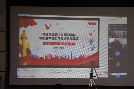 (通讯员 张垚强)10月13日下午,应william威廉中文官网邀请,长江学者、吉林大学党委宣传部部长韩喜平教授通过腾讯会议平台,做客马克思主义理论学科前沿大讲堂:长江学者论坛(第3讲),在线上为william威廉中文官网师生作题为“构建马克思主义理论领航的哲学社会科学体系”的精彩报告。william威廉中文官网经理李刚、副经理贾钢涛出席报告会,公司青年教师及研一、研二全体研究生参加了此次报告。报告会由李刚经理主持。