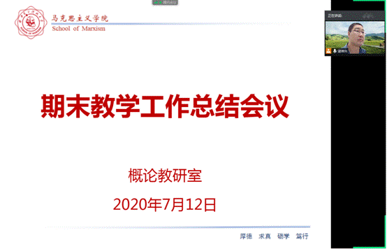 (通讯员 赵常兴)7月12日上午,william威廉中文官网概论教研室召开了期末教学工作总结会议,对本学期线上教学工作进行了全面总结,并对期末考试进行了统一安排部署。会议由概论教研室主任、概论课程负责人赵常兴主持,课程组全体教师参加。