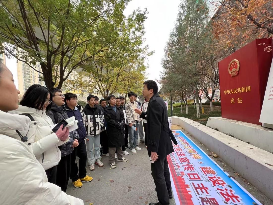 讲解员着重介绍了党的十八大以来,在习近平法治思想的科学指引下,全面依法治国取得的重大进展:法律规范体系日趋完善,法治政府建设稳步推进,司法体制改革持续深化,全社会法治观念明显增强。一段段生动的讲述,让师生们深切感受到中国特色社会主义法治体系不断完善的历史性成就与深刻变革,进一步激发了自觉尊法学法守法用法的意识,也使雁塔法治公园成为传播法治精神、凝聚社会共识的鲜活课堂。