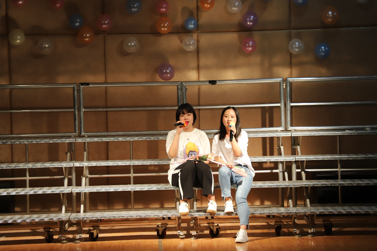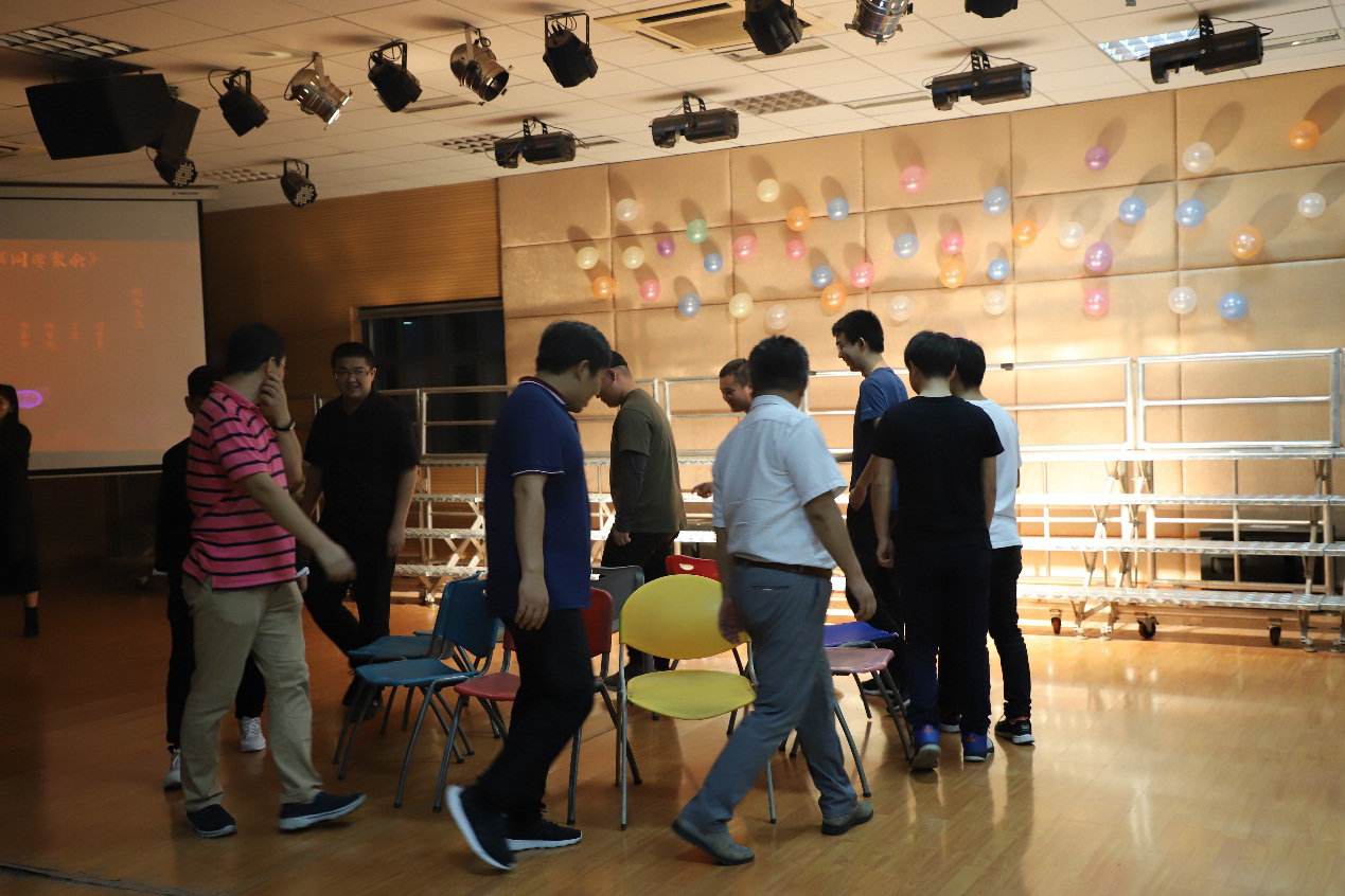 在游戏环节,老师、员工鼓足干劲,气氛活跃,乐趣盎然,即使屋外乌云遮月,但屋内歌声、鼓掌声、加油声,声声入耳,情义远传。