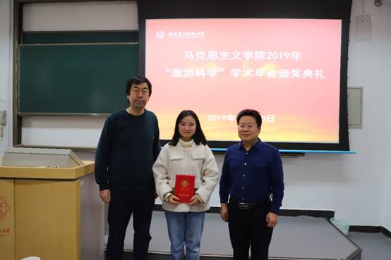 会上,特等奖获得者代表鲁晶和一等奖获奖者代表韩熠阳分别就论文写作的经验和老师同学们进行交流分享。