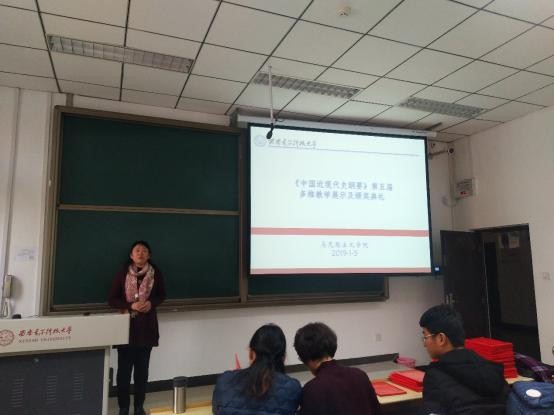 这是中国近现代史纲要教研室第五次组织该项活动。多维教学方式是近年来中国近现代史纲要教学团队在推动本科教改方面做出的探索和实践。在专题授课的基础上充分发动员工自主学习的兴趣,以问题为导向让员工积极参与到教学过程中,取得了良好的教学效果。参与本次教学展示活动的员工分为36组,从2017级全部本科生中选拔产生。