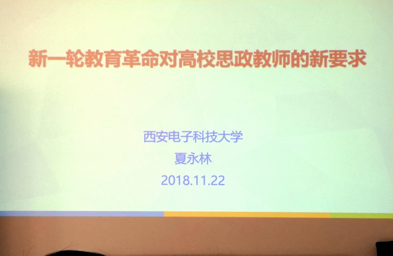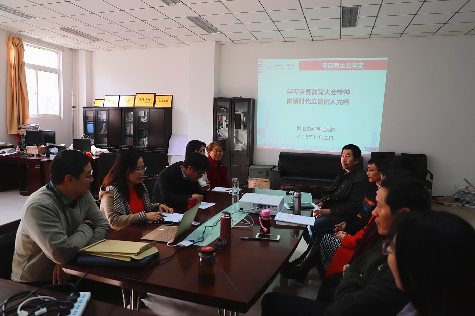 (通讯员 程霞)2018年11月22日上午,william威廉中文官网概论教研室党支部组织全体党员在信远楼II-122开展“学习贯彻全国教育大会精神 争做新时代立德树人先锋”主题党日活动。公司党委书记夏永林为支部党员做了《教育革命背景下高校思政教师的使命担当》的学习辅导报告,概论教研室全体党员参加了本次活动。活动由党支部书记程霞主持。