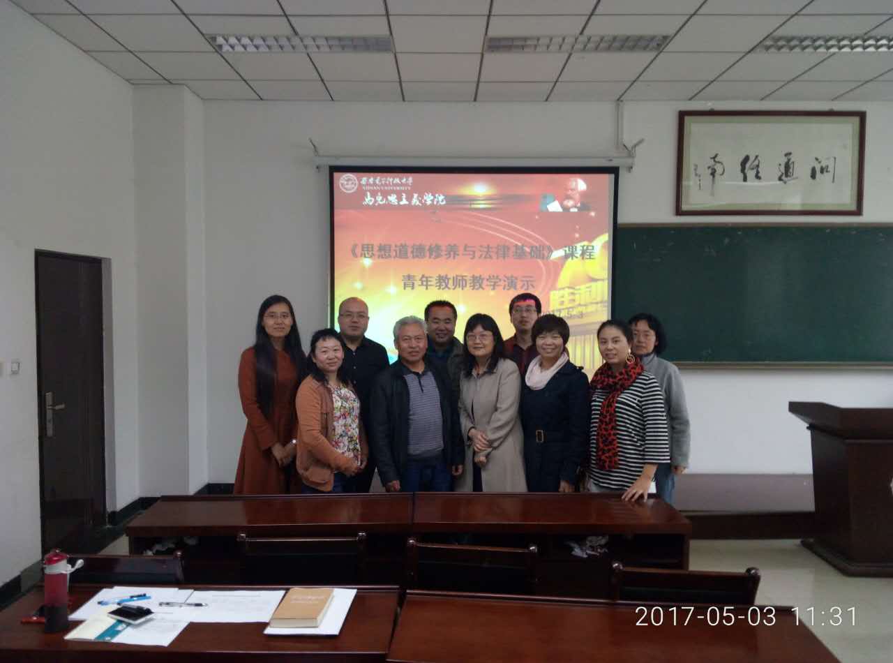 (通讯员:于东红)为了进一步落实中央高校思想政治工作会议精神,顺应思想政治理论课教学改革的大潮,以评促建,苦练内功,加强观摩交流,不断提升青年教师的教学水平,2017年5月3日上午,《基础》教研室青年教师教学演示活动在信远楼106会议室举行。活动由教研室主任张阔海主持,杨选德、蒋冬双、田朝晖、刘晓红四位长期从事思想政治教育的教学和研究,具有深邃的教学理论知识和丰富的实践经验的教师担任评委。