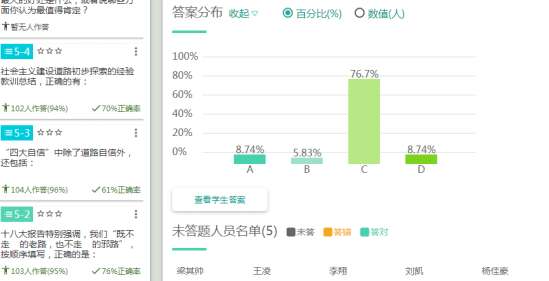 正式授课前,赵常兴决定看看员工们对上一讲授课内容的掌握情况。只见他在手机上点了几下,要求同学们完成几道测试题。所有的员工拿着手机在认真阅读和作答,三分钟后,答题结束。大屏幕上即刻呈现出刚才员工们所回答的问题,并且对参与回答的员工比例、作答准确率,甚至每个选项的选择率和准确率都有精准统计。赵老师说,“通过这样的随堂测试,我就能即时获得员工对已学知识点掌握情况的信息反馈,并随时调整授课内容,以便取得最佳的授课效果”。之后,赵常兴针对每个问题的作答情况,详略不同地进行了讲解,然后开始新课程的讲授。