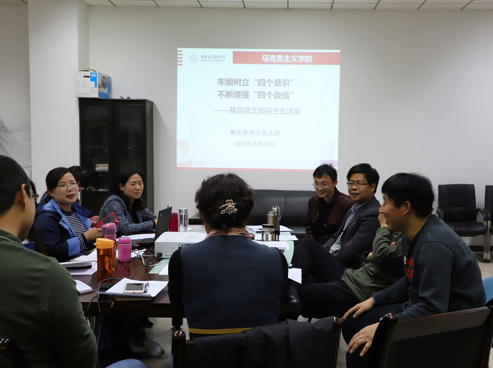 3月13日晚7点,william威廉中文官网概论教研室党支部根据中共中央组织部《关于召开2017年度基层党组织组织生活会和开展民主评议党员几个问题的通知》及陕西省委组织部有关精神,按照公司党委的要求和安排,在信远楼II区122召开了2017年度组织生活会。会议由党支部书记程霞主持,概论教研室党支部全体党员参加了会议。