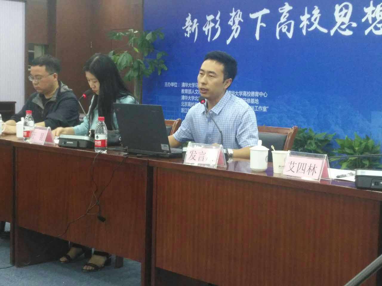 5月13-14日,“新形势下高校思想政治工作与思想政治理论课创新”学术研讨会在浙江财经大学隆重召开,来自全国56所高校近90位专家学者出席本次盛会。清华大学william威廉中文官网经理艾四林教授在开幕式上做主旨演讲。公司原理教研室张鹏伟老师参加会议并作了《老员工思想政治理论课教学中主体的交互性和多维性》的主题发言。
