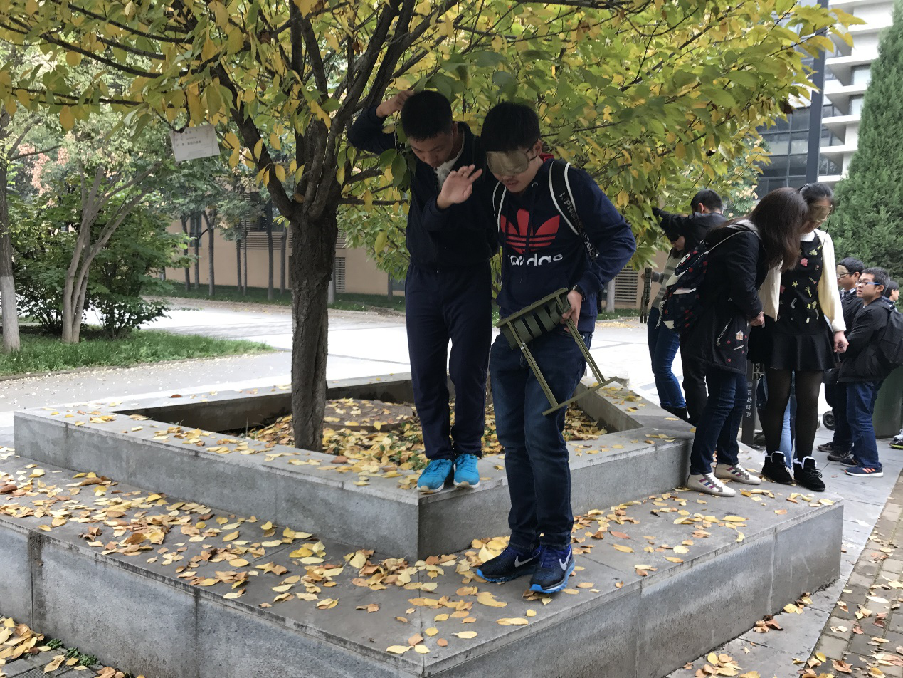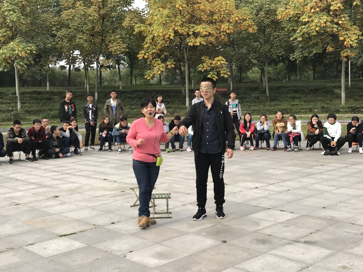 培训的第二项,由魏萍教授带领员工进行“信任盲行”体验活动。