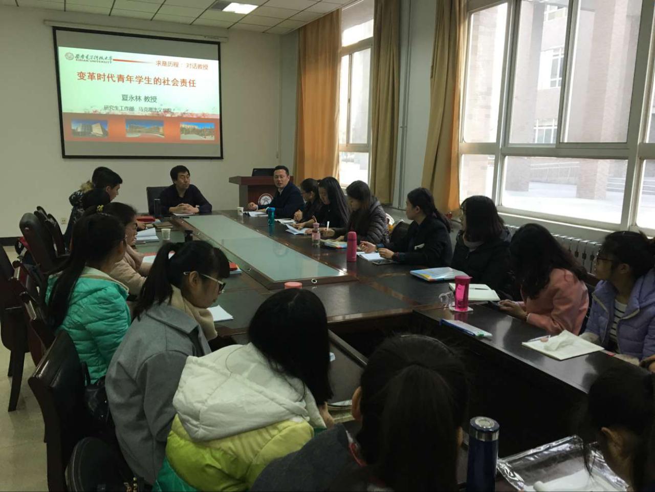 随后,与会研究生与夏永林进行了交流和互动,并就如何将做学问与解决现实社会问题结合,如何发挥思想政治教育的作用改变人的态度和思维等问题做了解答,夏永林认为在这个信息爆炸的时代,年轻人时常感觉到无所适从,“中国梦”的提出解决了为谁培养人的问题,在大众创业、万众创新的时代,青年人更应该把握机会,将个人梦想与国家梦想结合,为社会担负责任。针对网络意识形态问题,夏永林认为这是一个新的领域,我们十分重视网络技术安全,但对网络思想安全这个领域的研究尚显空白。