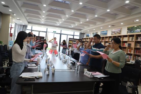 会上,公司领导班子和新教职工认真观看公司2021年庆祝教师节暨先进表彰大会直播,仔细聆听校领导讲话,开展新教师入职宣誓,并合唱校歌。