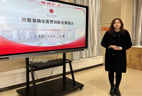 王曦以“完整准确全面贯彻新发展理念”为主题,围绕新发展阶段实行什么样的发展、怎样发展进行教学展示。王曦首先对创新、协调、绿色、开放、共享的发展理念的主要内容和地位进行介绍和揭示,又系统阐明了新发展理念中五大内容的相互关系,最后点明主题,对完整、准确、全面贯彻新发展理念的内涵加以诠释。
