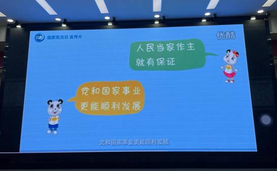 参赛选手们演讲完后,全体师生一起观看了宪法宣传教育片,进一步提升了大家的法治思维和法律意识。