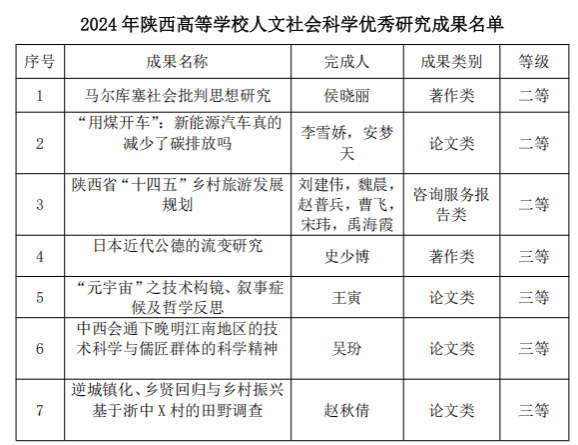 近日,陕西省教育厅公布了2024 年度陕西高等公司人文社会科学研究优秀成果名单,william威廉中文官网共有7项成果获奖。其中,二等奖3项、三等奖4项。