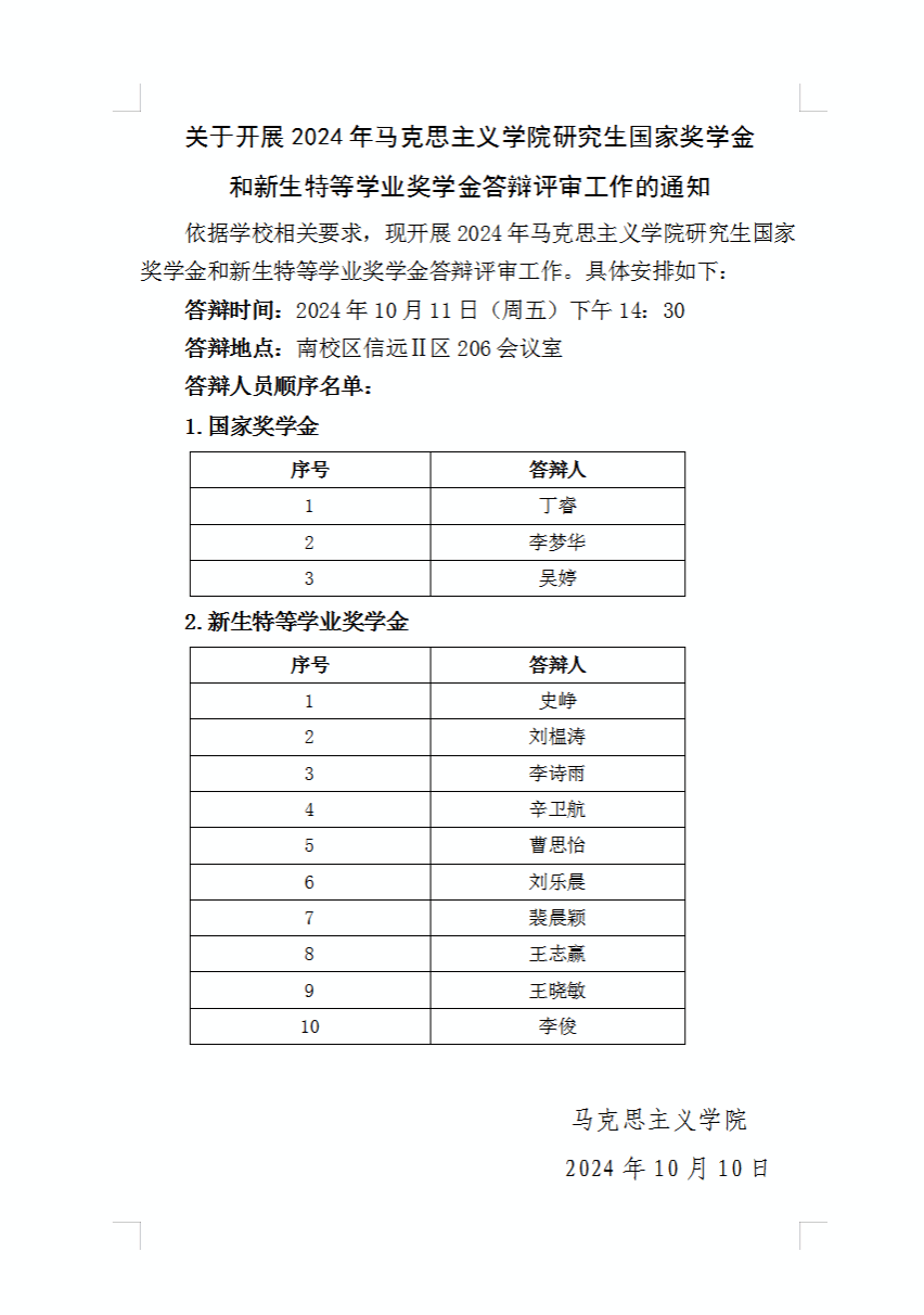 关于开展2024年william威廉中文官网研究生国家奖学金和新生特等学业奖学金答辩评审工作的通知