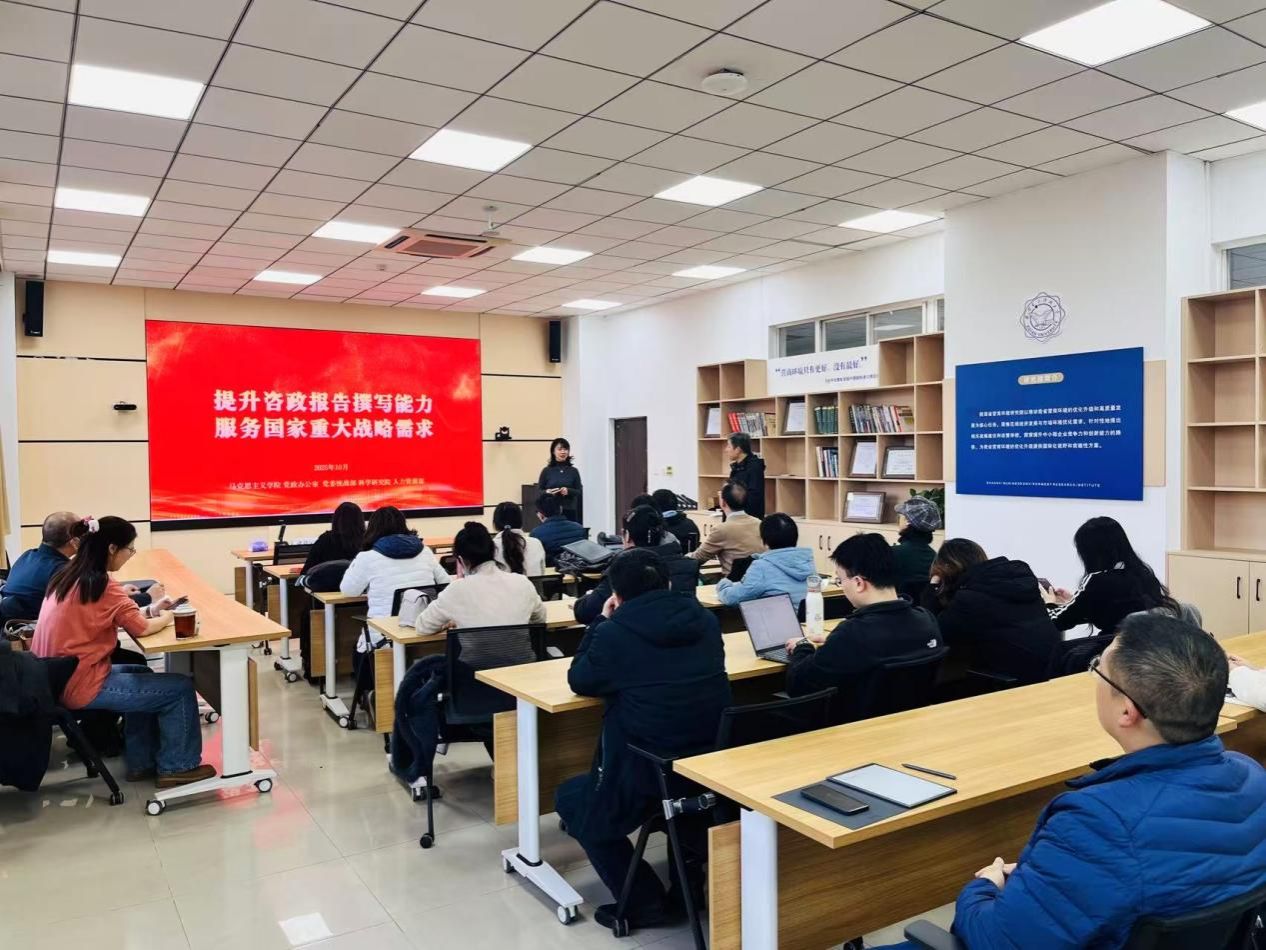 逄嘉宁以“如何将学术研究高效转化为高质量的决策咨询信息”为主题作专题辅导。她全面介绍了教育部、省委、省政府等重点报送渠道的具体要求,以及公司在咨政建言方面的顶层设计、激励保障举措,并重点围绕选题方法、专业支撑、写作技巧等方面进行了系统讲解。