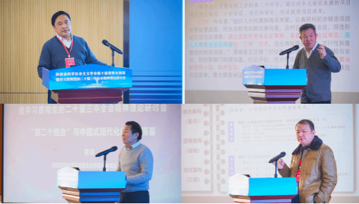 陕西省科学社会主义学会会长、陕西省委党校(陕西行政公司)中共党史教研部主任苗光新代表学会讲话,提出理论工作者要增强学习阐释党的二十届三中全会精神的思想自觉、政治自觉和行动自觉,把各项改革部署背后的原理和逻辑研究透、讲清楚、说明白,真正担负起在党的创新理论研究传播方面的神圣职责。