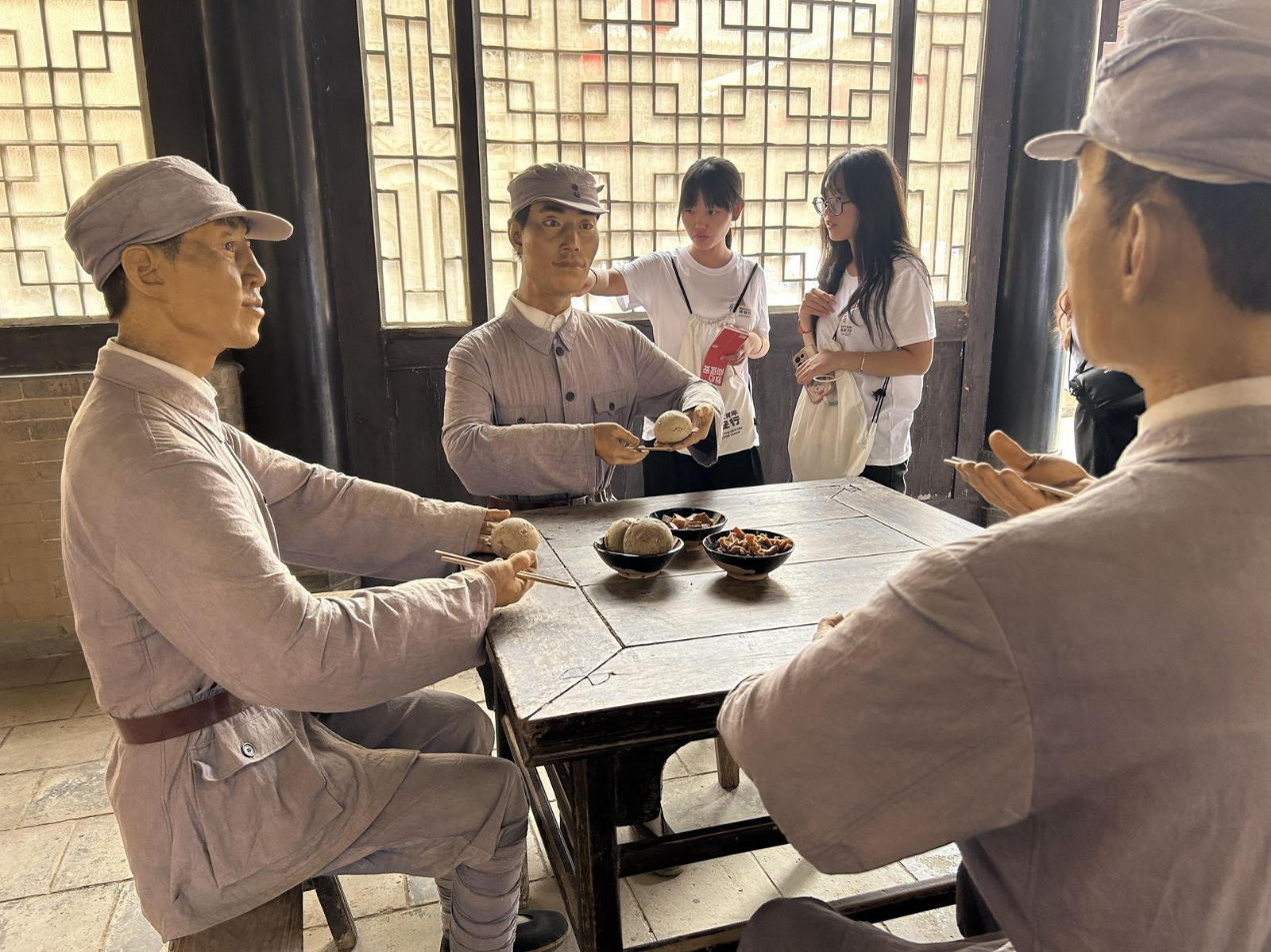 八路军西安办事处旧址前身为红军驻西安联络处,馆内陈列遵照“保存全貌,以存其真”的方针,再现了八路军驻陕办事处的历史风貌。当日清晨,实践团队步入革命先辈住室、地下室、会客厅、救亡室等革命旧址,认真聆听讲解,通过观看馆内生动详实的历史照片、文献和文物,亲身感悟革命先辈的伟大革命精神,并开展了思政课现场教学《抗战时期进步青年奔赴延安》。