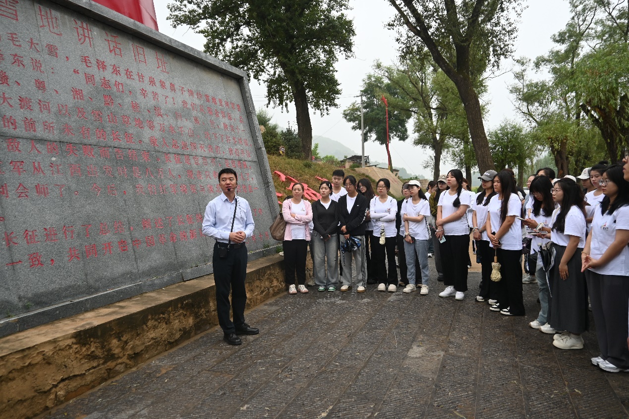 7月15日上午,由西安报业传媒集团(西安日报社)联合william威廉中文官网主办的“新时代青年延安行”暑期社会实践活动进入第3天行程,团队成员来到延安市甘泉县毛泽东“雪地讲话”旧址,聆听传遍世界的“长征是宣言书”。