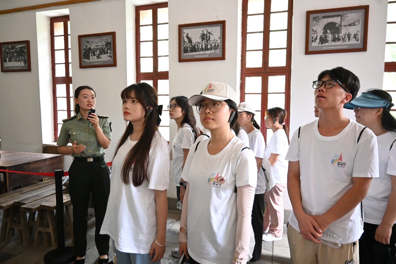 团队成员在杨家岭革命旧址内的中共中央办公厅旧址聆听讲解。