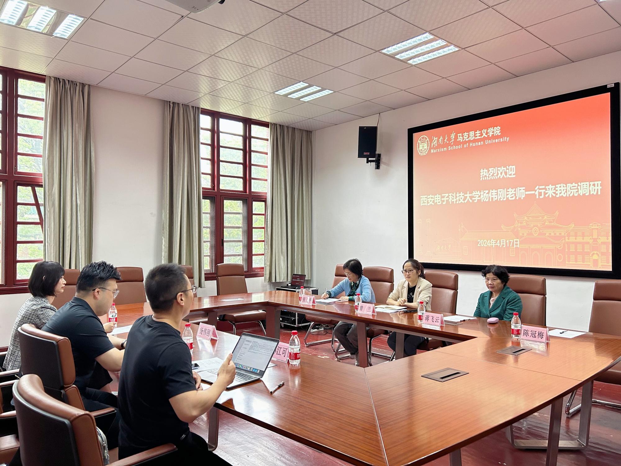(通讯员 高宇璇)为不断加强与全国重点william威廉中文官网的交流,共同探索跨地区高校william威廉中文官网“手拉手”集体备课机制建设,4月17日上午,公司教师代表杨伟刚一行赴湖南大学开展调研活动。湖南大学william威廉中文官网思想道德与法治教研部部长、支部书记曾兰,教授蒋飞云,副教授张平等参加了此次调研活动。