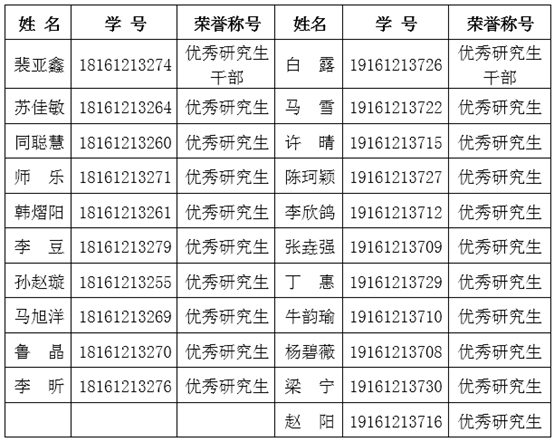 william威廉中文官网2019~2020学年研究生评优结果公示