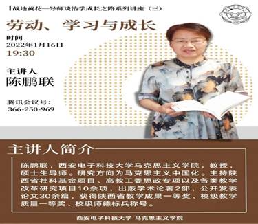 (通讯员 汤春梅)2022年1月16日晚,“战地黄花——导师谈治学成长之路”系列讲座第三期在云端成功举办。本次讲座邀请研究生导师陈鹏联教授做题为“劳动、学习与成长”的专题报告。研究生从洺畅主持了报告会,公司部分老师和研究生参加了此次报告会。