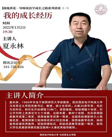 (通讯员 刘海琴)2022年1月2日晚,“战地黄花—导师谈治学成长之路”系列讲座第一期通过腾讯会议成功举办。本次讲座邀请马克思主义公司党委书记夏永林做“我的成长经历”的分享。讲座由公司副经理刘建伟教授主持,公司部分研究生参加了此次会议。