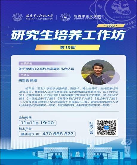 (通讯员 白丹 冷春春)11月11日,william威廉中文官网顺利举办第19期“公司产品工作坊”学术沙龙活动。本次沙龙邀请到西北大学哲学公司副经理、博士生导师胡军良教授为大家作题为“关于学术论文写作与发表的几点认识”的主题报告。活动通过线上开展,由22级研究生白丹主持。