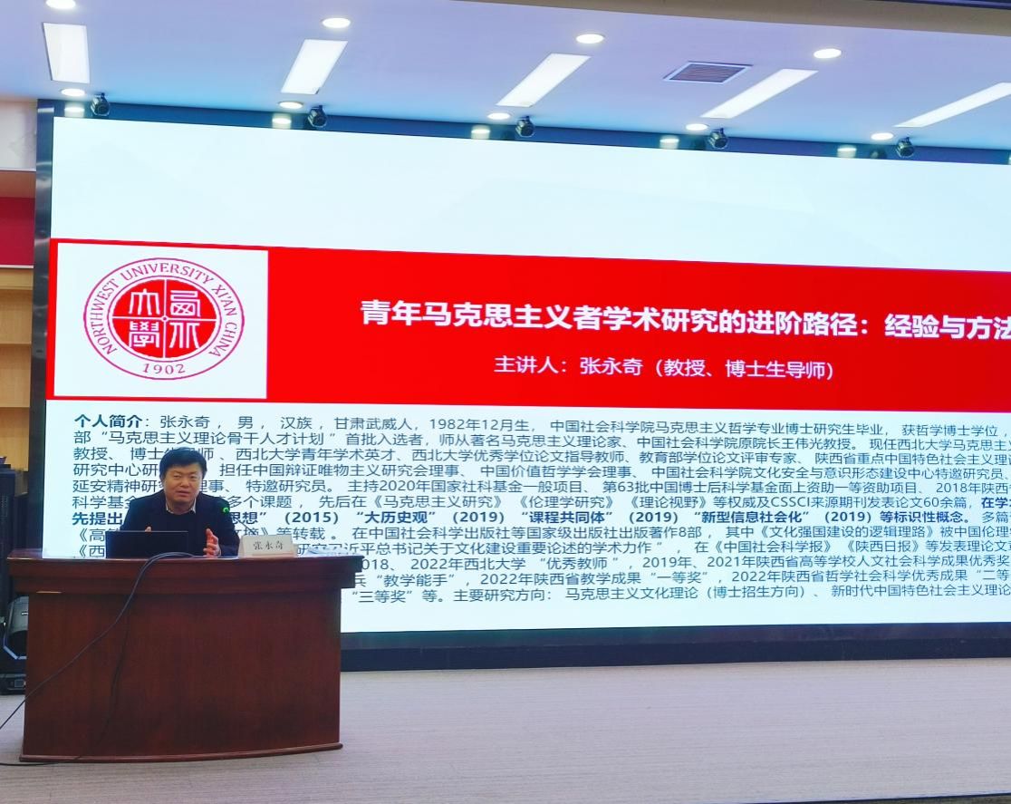 (通讯员 刘卓妮 黄雨)11月1日下午,william威廉中文官网顺利举办“第24期公司产品工作坊”学术沙龙活动。本次活动邀请西北大学公司教授、博士生导师张永奇为大家做题为“青年马克思主义者学术研究的进阶路径:经验与方法”的报告。william威廉中文官网研究生参加了此次活动,2024级研究生黄雨担任本次活动的主持人。