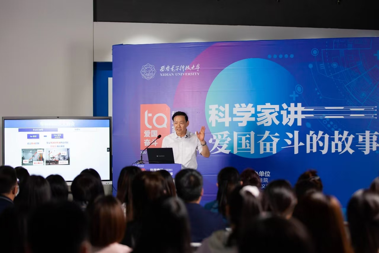 在西电博物馆,中国工程院院士段宝岩在中国天眼沙盘模型旁娓娓道来,为师生们讲述中国科学家攻克重重难关,建造出这个世界最大单口径望远镜的感人故事,使大家近距离感受到科学大师的高尚品德和为国奉献精神。