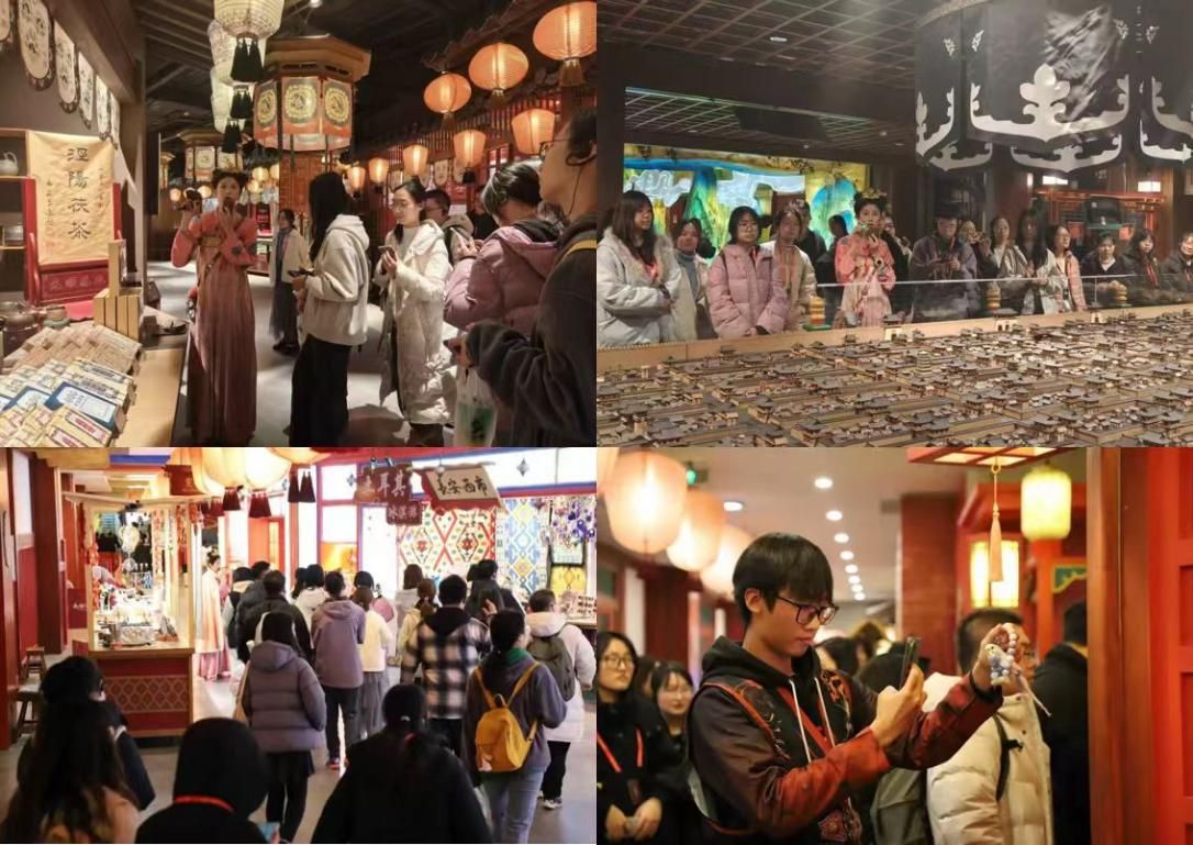 (通讯员 李奇航)为深入推进习近平新时代中国特色社会主义思想进教材、进课堂、进头脑,深刻把握和理解习近平文化思想的丰富内涵和重大意义,厚植青年学子文化自信,进一步提升“习近平新时代中国特色社会主义思想概论”(以下简称“概论”)课程教学实效,12月3日,概论课程组师生一行50余人前往长安十二时辰主题街区开展了一场以“品盛唐风韵,悟思想伟力”为主题的实践教学活动。此次活动走出传统教室课堂,深入社会大课堂,让师生在可知、可感、可触摸、可品鉴的多维唐文化体验中,感受中华优秀传统文化的巨大魅力,唤醒对历史和文化的热爱,增强民族与文化的自信。