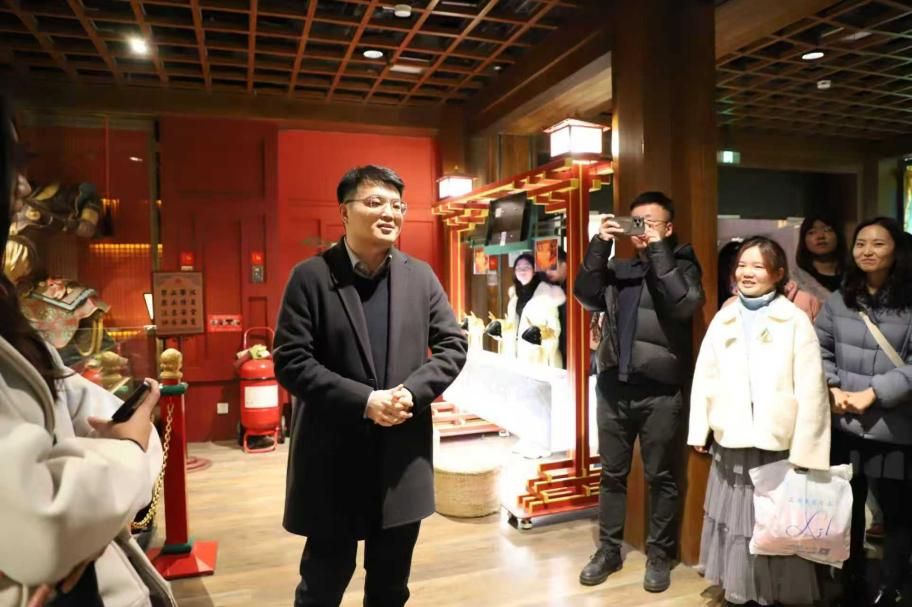 参观完主题街区,赵普兵老师讲授了一堂生动的《数字链活千年唐韵》文化课。他指出,长安十二时辰主题街区是中华优秀传统文化创造性转化、创新性发展典范,为文化强国建设提供了实践路径,并从三个方面进行了分析。在技术层面,街区通过数字化媒介重构历史场景,将靖安司长安城沙盘以1:850比例复原“百千家似围棋局”的坊市格局;在艺术创新层面,《霓裳羽衣舞》融合敦煌壁画三维扫描数据与非遗踏歌舞步,在动态展演中解构“诗乐一体”的礼乐美学考据的科技转译;在精神传承层面,太白酒肆的“斗诗擂台”以游戏化机制重构诗词教化功能,胡姬酒肆的西域乐舞则实证盛唐“和而不同”的文明互鉴理念。赵老师总结道,这种传承绝非简单的符号复制,而是在守正创新的基础上,形成“历史基因链”的当代转译。