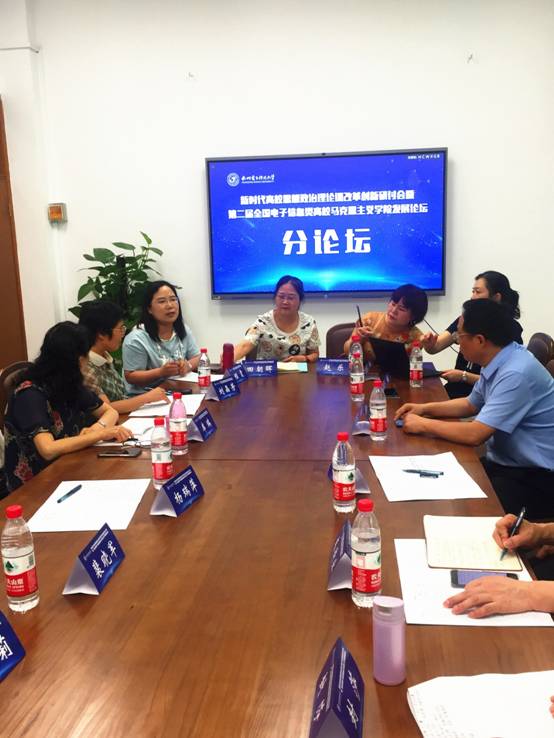 在分论坛会上,参会教师们还围绕“高校思想政治理论课改革创新”“马克思主义理论团队建设与公司产品”两个主题分别进行了深入讨论。其中,公司贾钢涛副经理梳理了行业院校马克思主义理论团队建设的状况,并与与会兄弟院校的专家交流了公司团队建设和人才培养的经验,增进了互信,展现了公司在团队建设和人才培养方面的自信。田朝晖副教授介绍了“原理”课“五位一体”教学改革的做法和经验。程霞副教授介绍了公司形势与政策课程在组织机构、团队队伍建设、集体备课等方面的具体做法,并与兄弟院校形势与政策相关教师就课程改革、考核考评、管理机制等方面进行了充分交流。
