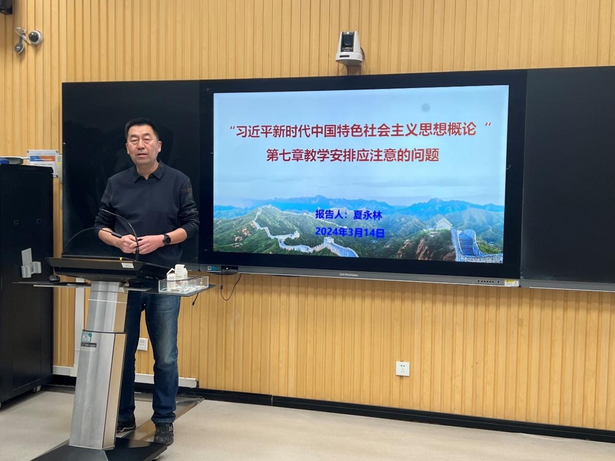 夏永林教授以“习近平新时代中国特色社会主义思想概论”第七章教学安排应注意的问题为题,围绕“社会主义现代化建设的教育、科技、人才战略”,认为思政课教师对于任何一门课程的教学而言,用什么样的教学方法,取决于教学的对象、教学的环境以及教师本人的因素,需要在教学中紧紧把握住“守住底线、准确定位、教无定法、效果为先”的原则。