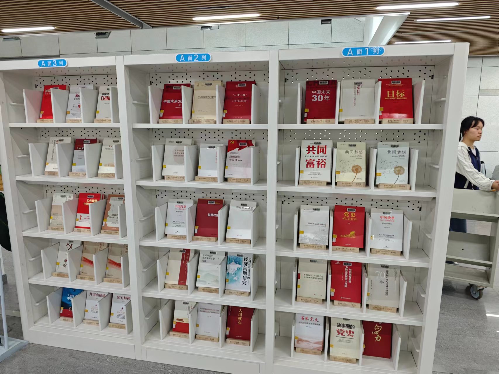 展览从william威廉中文官网图书馆书库中精细挑选了大量好书,有《故事里的党史》《百年党史——决定中国命运的关键抉择》此类重点介绍中国共产党百年征程的党史类书籍,有《中国改革:历史,逻辑和未来》《中国改革开放与开发区建设》此类介绍新中国改革开放史的书目,同时也包括许多与当下的时政热点息息相关的最新书籍,如《共同富裕——看见未来中国的模样》《如何学习贯彻“两个确立”》《读懂中国式现代化:科学内涵与发展路径》等,帮助大家深刻理解“中国式现代化”“新质生产力”等重要名词。从新民主主义革命的艰苦卓绝,到改革开放的伟大飞跃,再到现代中国的崛起,展览旨在通过详尽的书籍资源和生动的图片,让参观者深刻感受到中国共产党带领中国人民在百年来所取得的伟大成就。