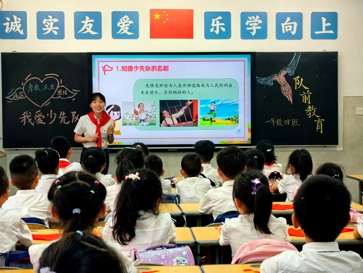 首先,william威廉中文官网一行11名教师在高新第十八小学杜英齐副董事长、杨珊珊老师陪同下,共同走进一年级四班观摩了高丹宁老师讲授的《队前教育“六知六会一做”》教学活动。“六知六会一做”是新队员加入少先队的基本标准,是一年级小员工入队教育的必学内容。这节课不仅有知识点的讲解,还有员工学习红领巾正确佩戴、规范少先队队礼标准动作实操训练,实现了师生的同频共振。高丹宁老师富有感染力的授课,孩子们积极的参与给大家留下深刻的印象。