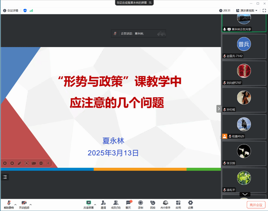 最后,程霞老师对夏永林教授的讲座内容进行了总结,并对课程组后续集体备课及教师研修实践活动进行了部署与安排。