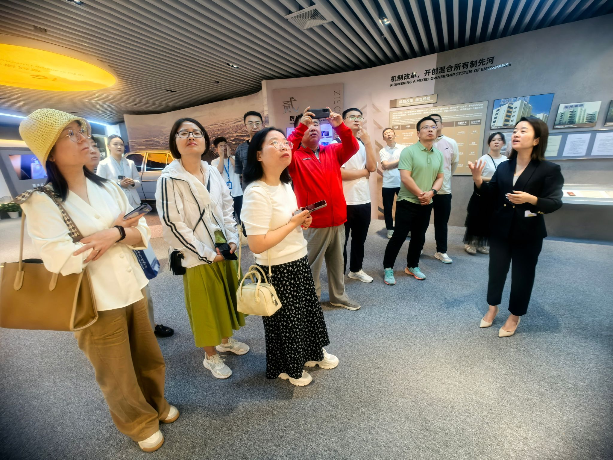 在科技园总部展厅,考察组了解到中兴的自研芯片在算网一体化背景下,以通信基础设施为根基,向算力、汽车电子领域拓展,形成了赋能“千行百业”数字化转型的产品布局。除了享受一场“科技盛宴”之外,通过与企业技术人员的交流,中国企业家、科学家的爱国情怀、责任担当和创新智慧也深深打动了在场的思政教师。