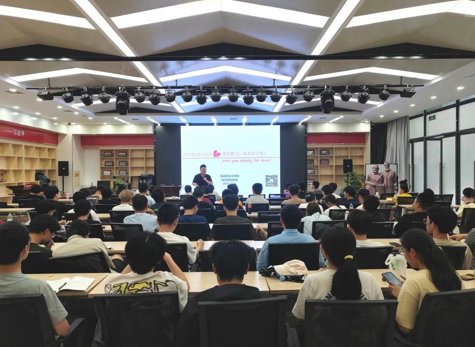 最后,杨伟刚副教授从爱的五种能力,即情绪管理、述情、共情、允许和影响五个方面出发,引导同学们讨论理想爱情的模样与健康、平等、尊重的恋爱关系,同时分享了一些实用的恋爱技巧和方法,并衷心的祝愿在场所有同学能收获理想的爱情。“爱情是生活中的诗歌和太阳”。互动解惑环节气氛热烈,在同学们积极踊跃表达自身情感困惑,杨伟刚副教授给予针对性解答并赠予《爱的艺术》一书中,本次线下讲座活动圆满结束。