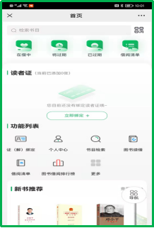 2.在该公众号“微服务”栏目内,点击“B113图书中心”模块,首次进入需要绑定自己的学、工号。